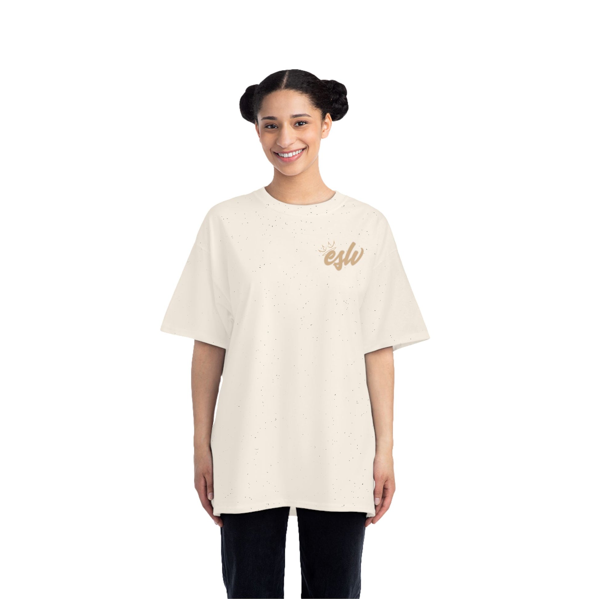 - Relaxed fit with black sewn-in label; Natural color shows subtle flecks