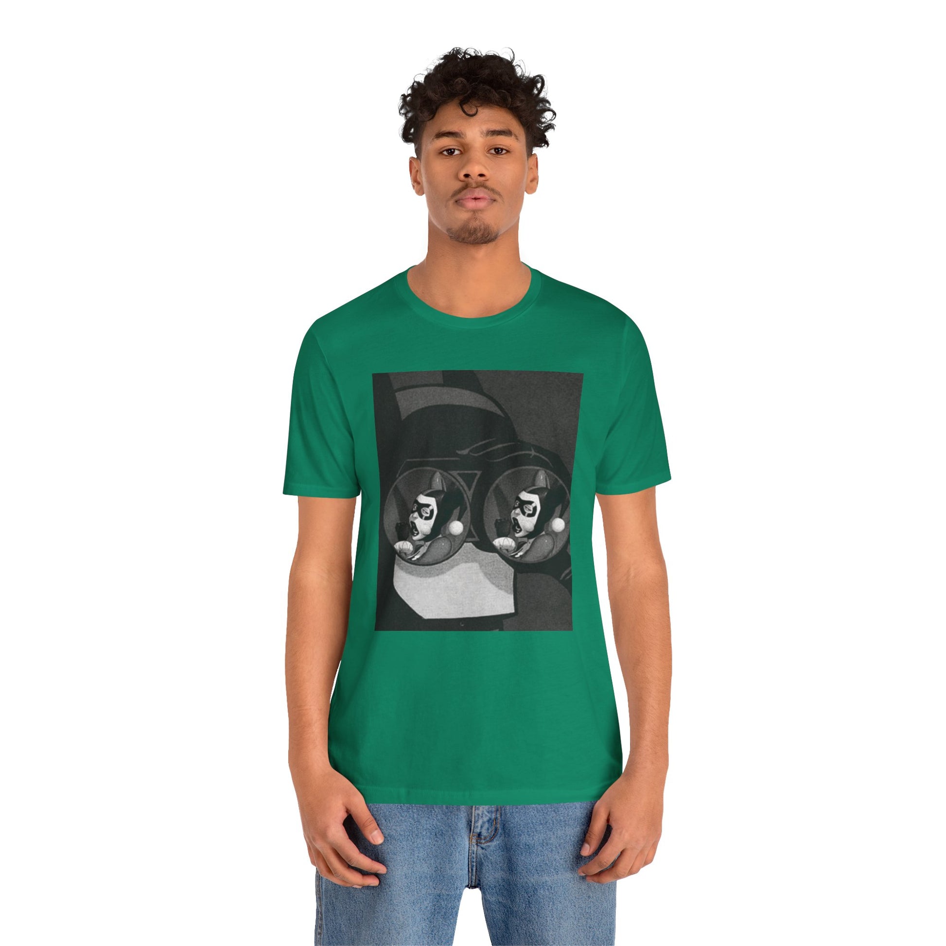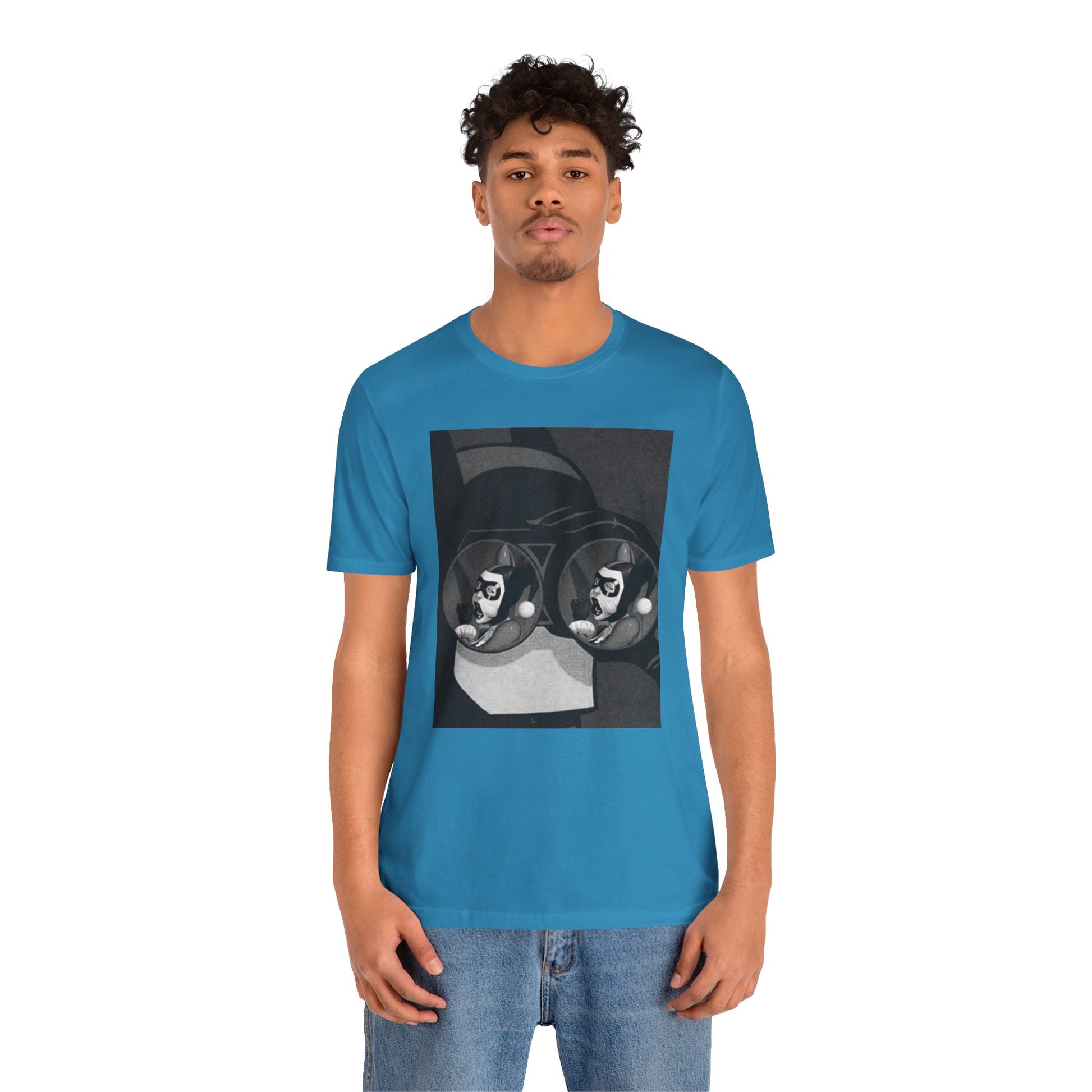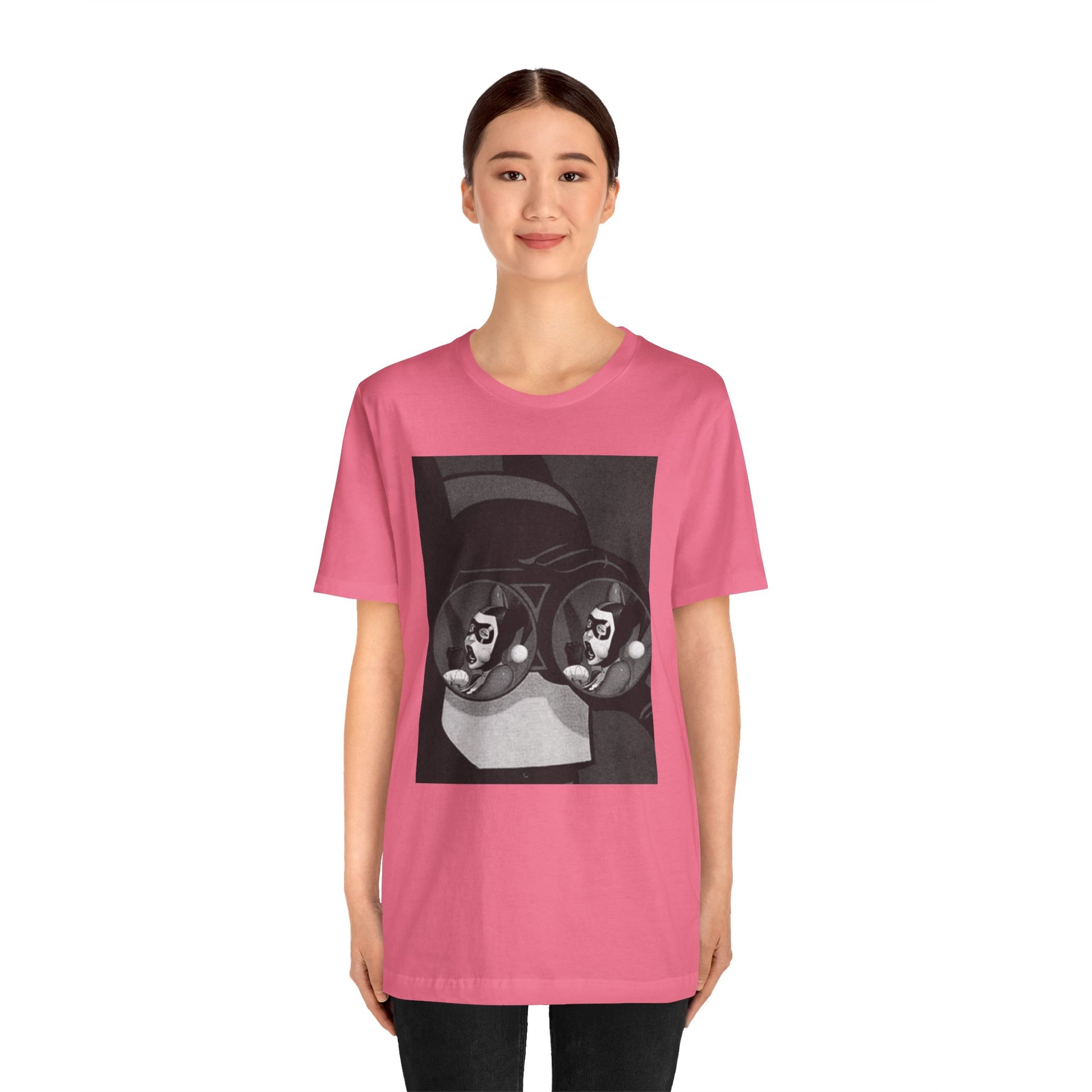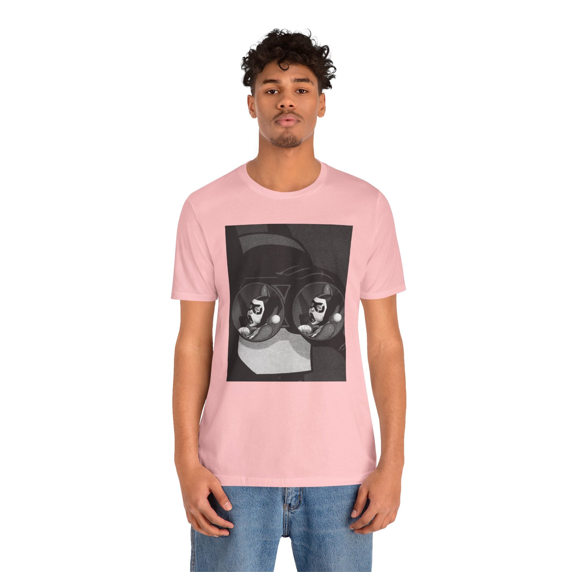 A soft, breathable tee with a moody black-and-white art print that feels like a page torn from a graphic novel. The design—two mirrored faces reflected in round lenses—pulls you into a quiet, slightly surreal moment. Lightweight Airlume cotton keeps the shirt comfortable all day, while the retail fit and crew neckline make it easy to dress up with a jacket or keep casual with jeans. Wear it when you want your outfit to feel thoughtful, lived-in, and a little secretive.