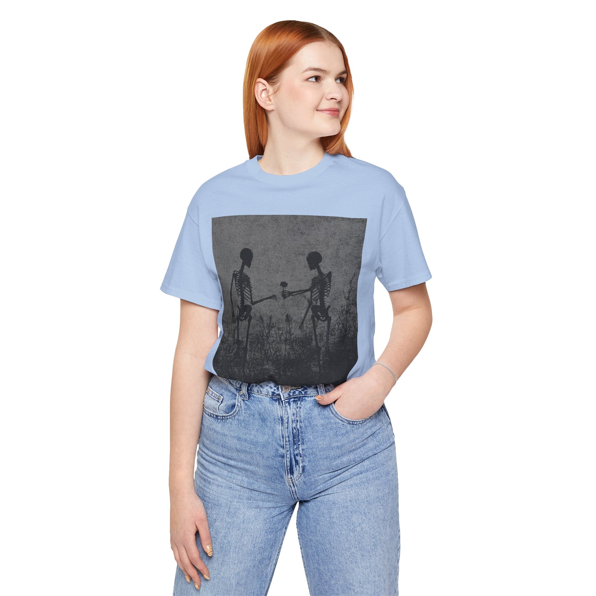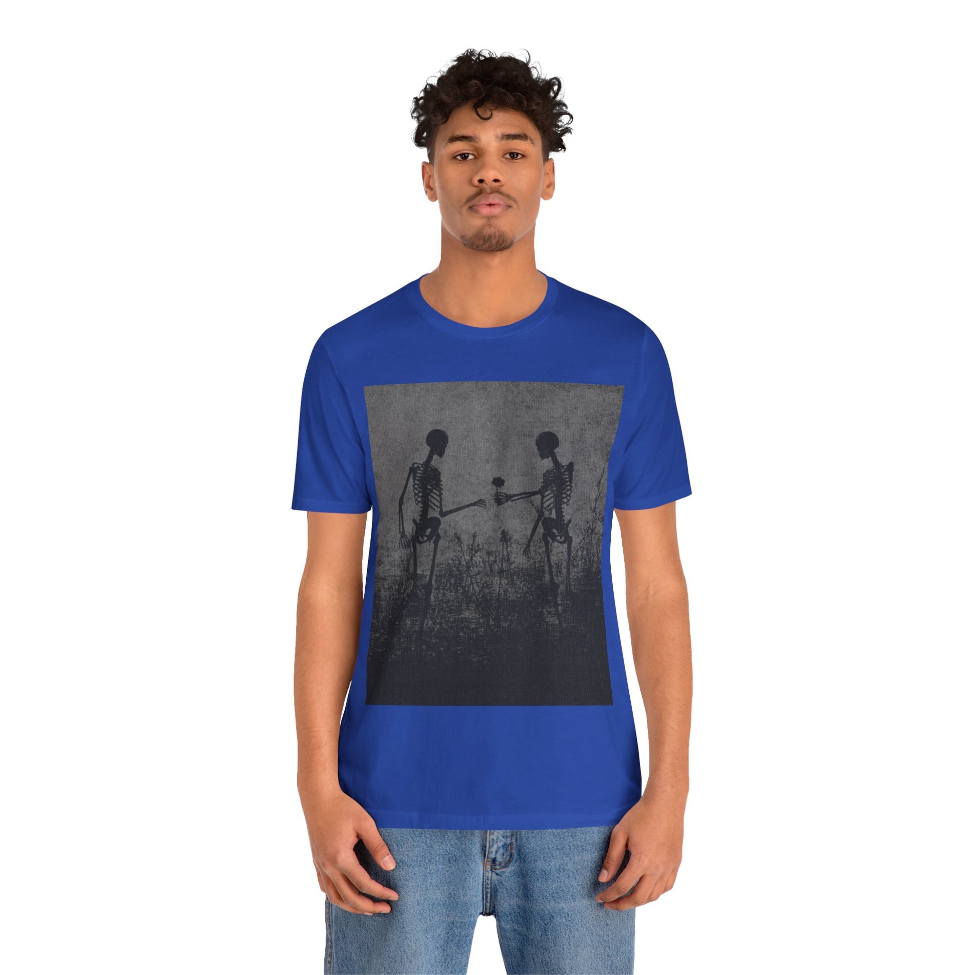 Embrace a unique blend of style and comfort with this Unisex Jersey Short Sleeve Tee. Featuring a striking design, this tee radiates a laid-back yet artistic vibe, making it an ideal addition to your casual wardrobe. Perfect for everyday wear, it easily pairs with jeans or shorts, allowing you to express your personality effortlessly. This tee appeals to art enthusiasts and those who appreciate standout designs. It's suitable for various occasions, from casual outings to gatherings with friends. Celebrate creativity during holidays like Halloween, or simply enjoy it on a sunny day at the park.
