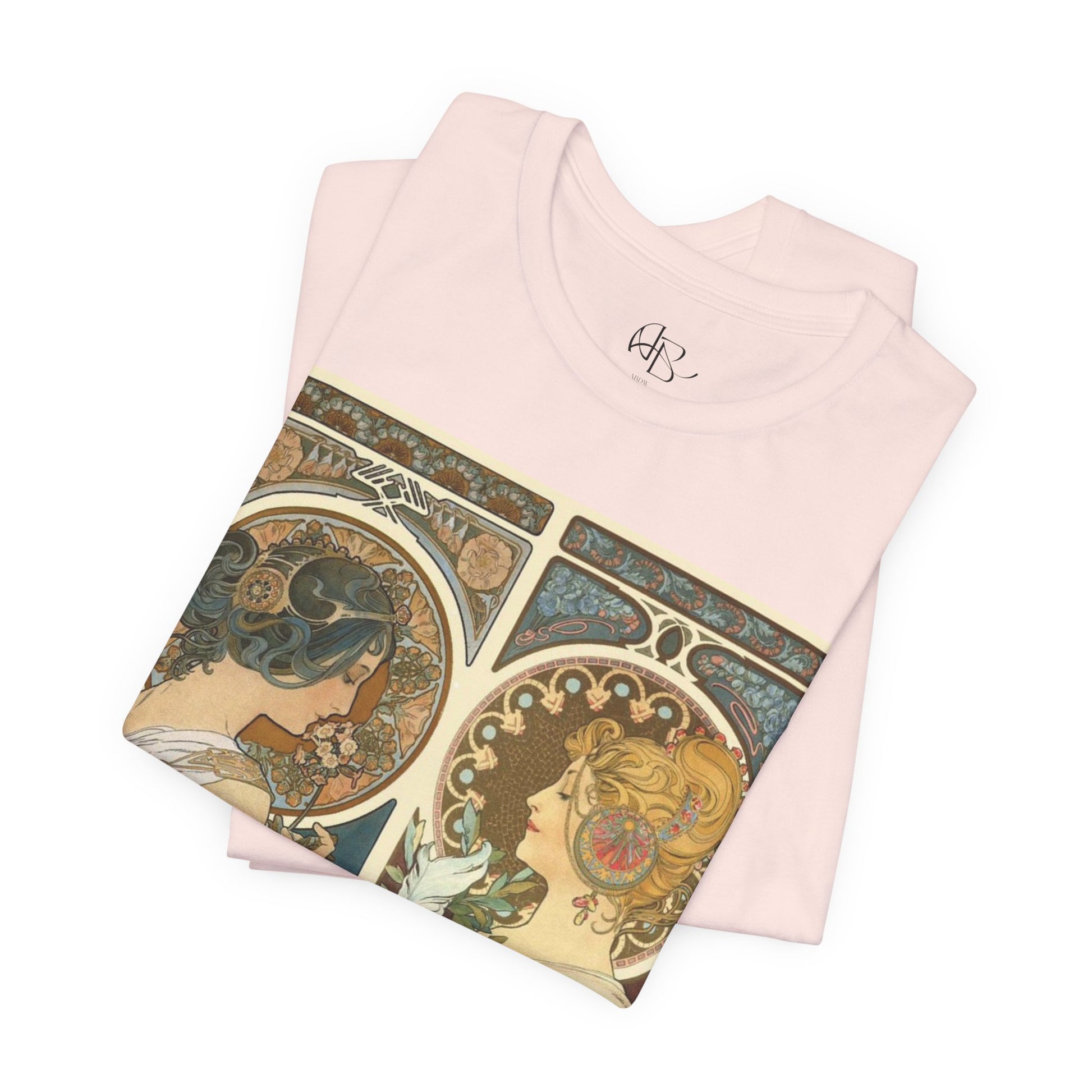 This soft, breathable tee carries a vintage Art Nouveau illustration across the chest—a gentle, detailed panel of two women framed by floral ornament and flowing lines. Lightweight Airlume cotton feels cool and worn-in from the first wear; the retail cut and crew neckline keep the look tidy under jackets or layered with cardigans. The print’s muted palette blends easily with everyday neutrals and gives a quiet, gallery-ready look that suits slow mornings, museum afternoons, or casual evenings out. Thoughtful construction—side seams, ribbed collar, shoulder tape, and a tear-away label—means it holds shape while staying comfortable. Ethically produced and REACH certified, this tee fits into a mindful wardrobe that values timeless art and easy, elegant style.